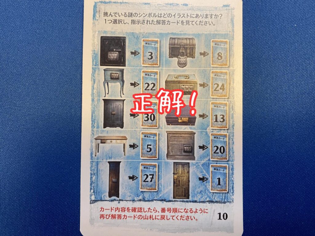 暗号用円盤によって得られた数字と一致する数字の解答カードを確認します。