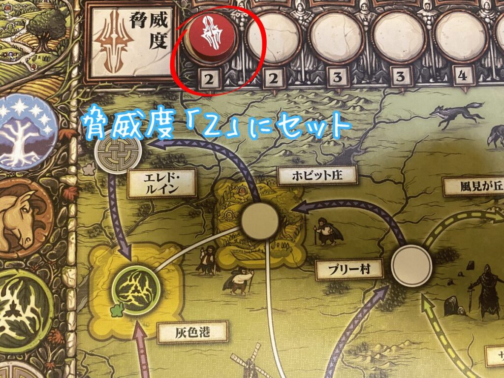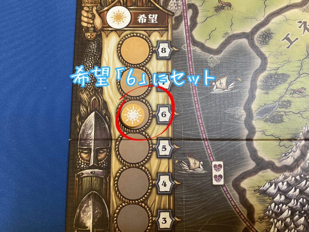 ゲームボード上に「脅威度マーカー」と「希望マーカー」を各トラックに配置します。