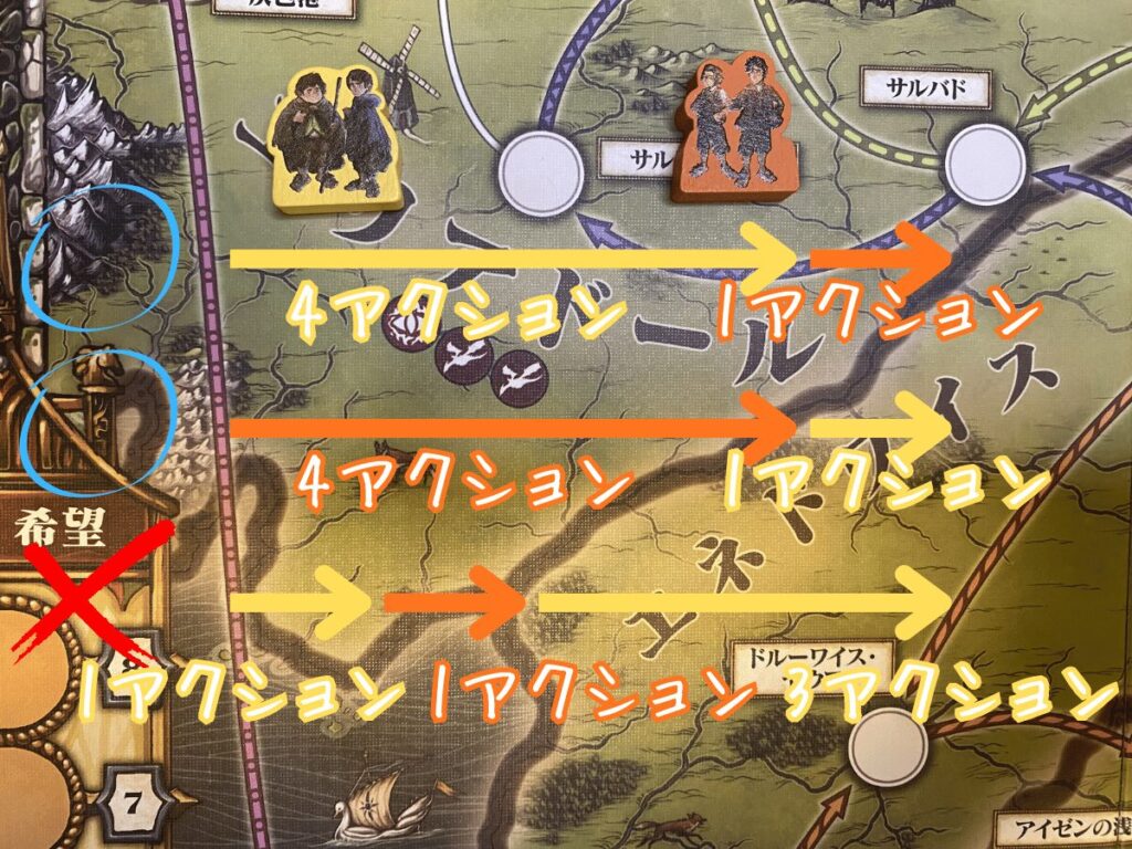 ・お前が見える!:フロドがいる地域にサウロンの目を移動させます。すでにフロドのいる地域にサウロンの目がある場合には希望を2つ喪失します。