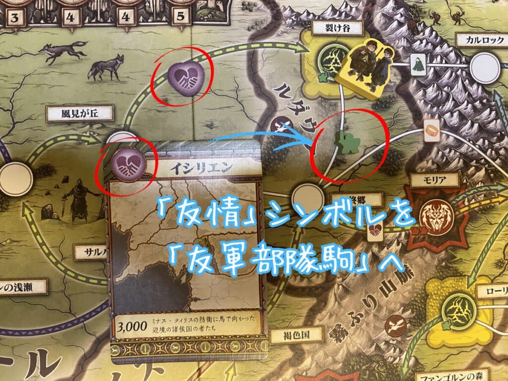 ・ナズグール!(ナズグールマーク):その地域にナズグール駒がある場合、友軍部隊駒を2個取り除きます。なければ無視。