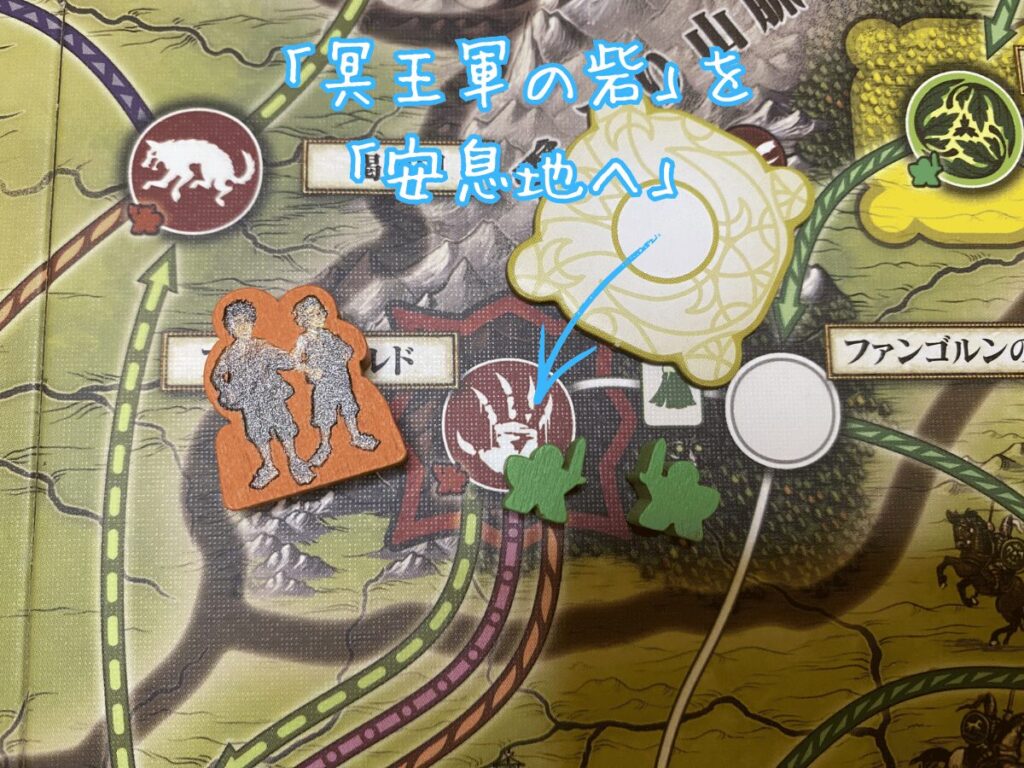 安息地スペースに冥王軍部隊駒があり、友軍部隊駒がない場合は、その安息地は冥王軍の砦となり、冥王軍の砦トークンで覆います。その地域は安息地としての機能を失い、希望を3喪失します。