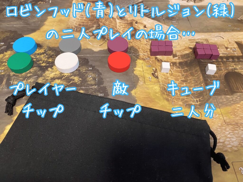 ロビンフッドを必須として、その他プレイヤーコマを人数分用意して所定の位置にセットします。