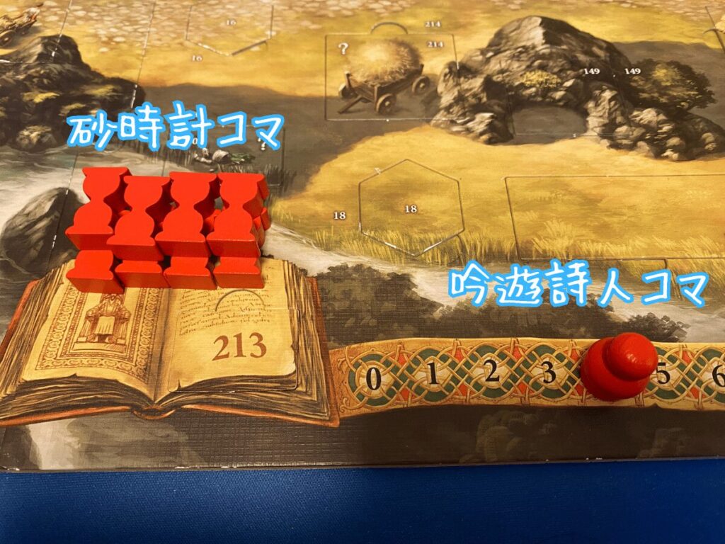 吟遊詩人コマは国の希望値を表すコマで、同じくマップ下部に所定の数字の上に設置します。