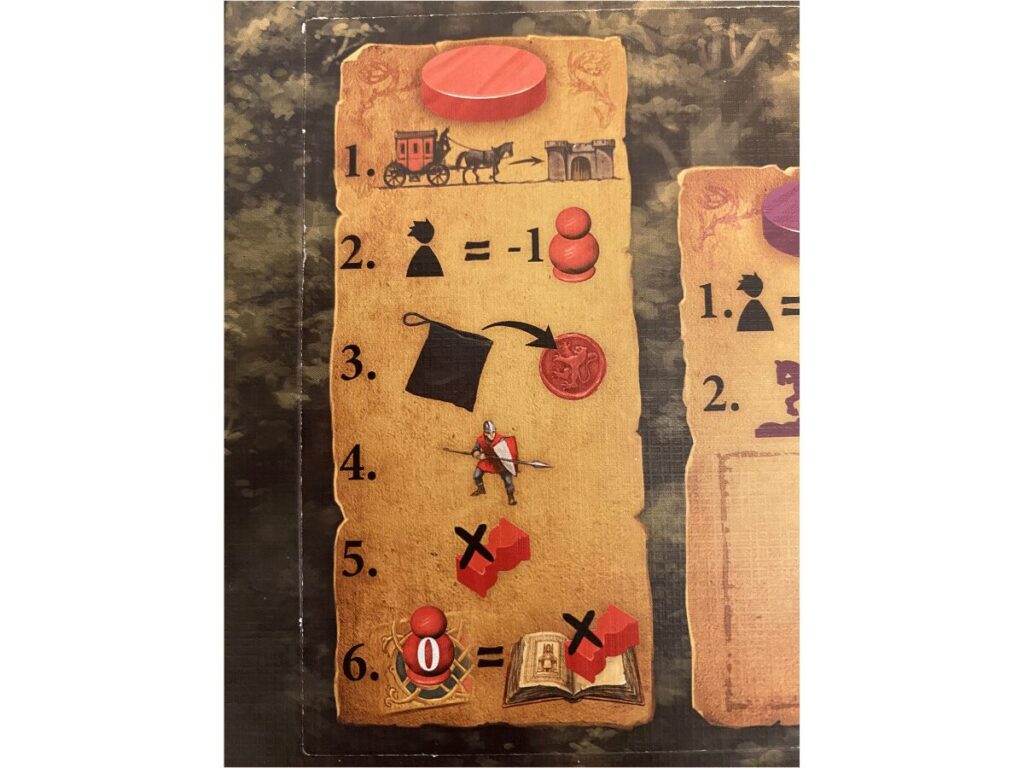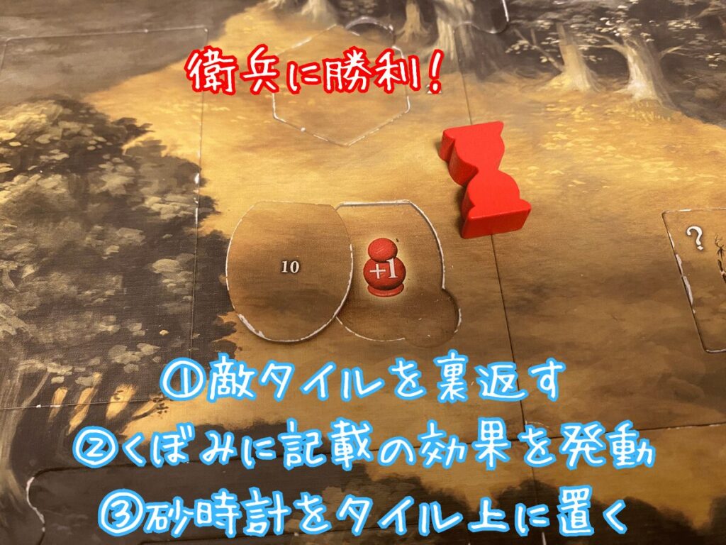 ①敵タイル(衛兵または貴族)を裏返し、くぼみに記載された処理を行います。