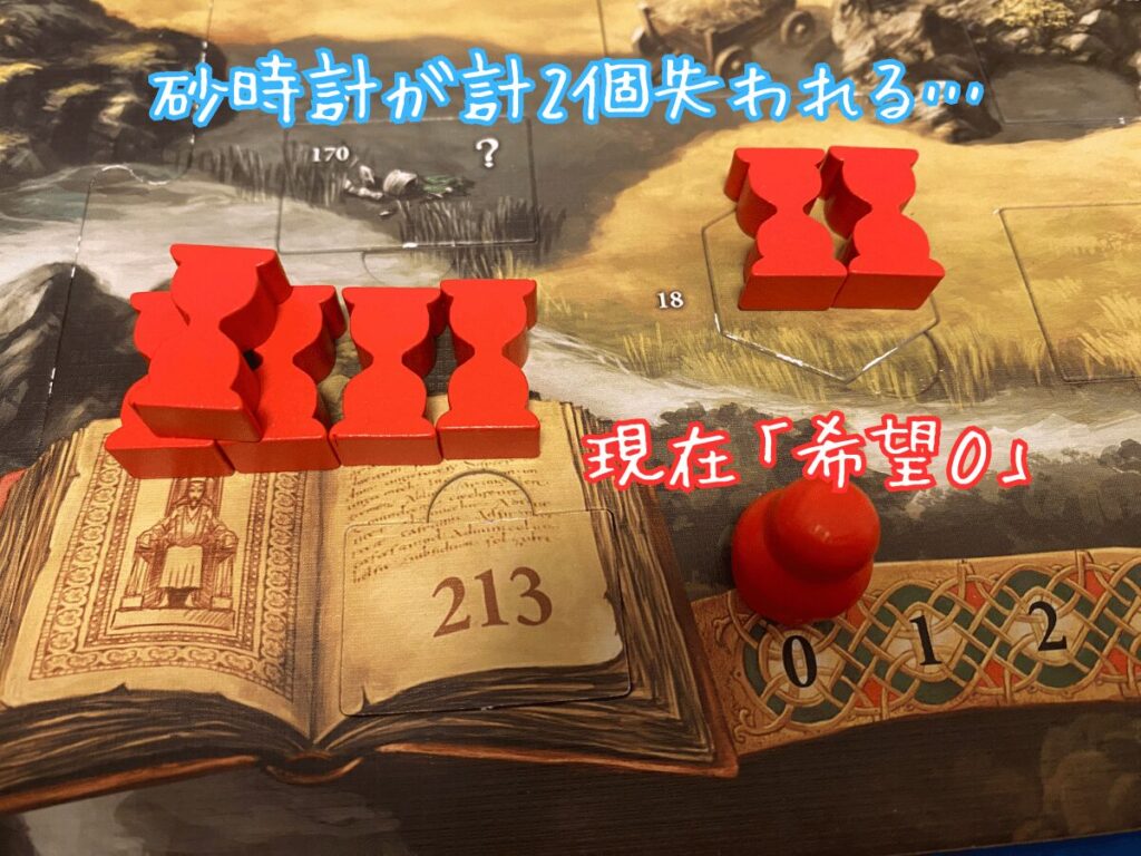 ⑤の処理時に国の希望が0であれば、追加で暗黒の結末の上に置かれた砂時計を1個取り除きます。