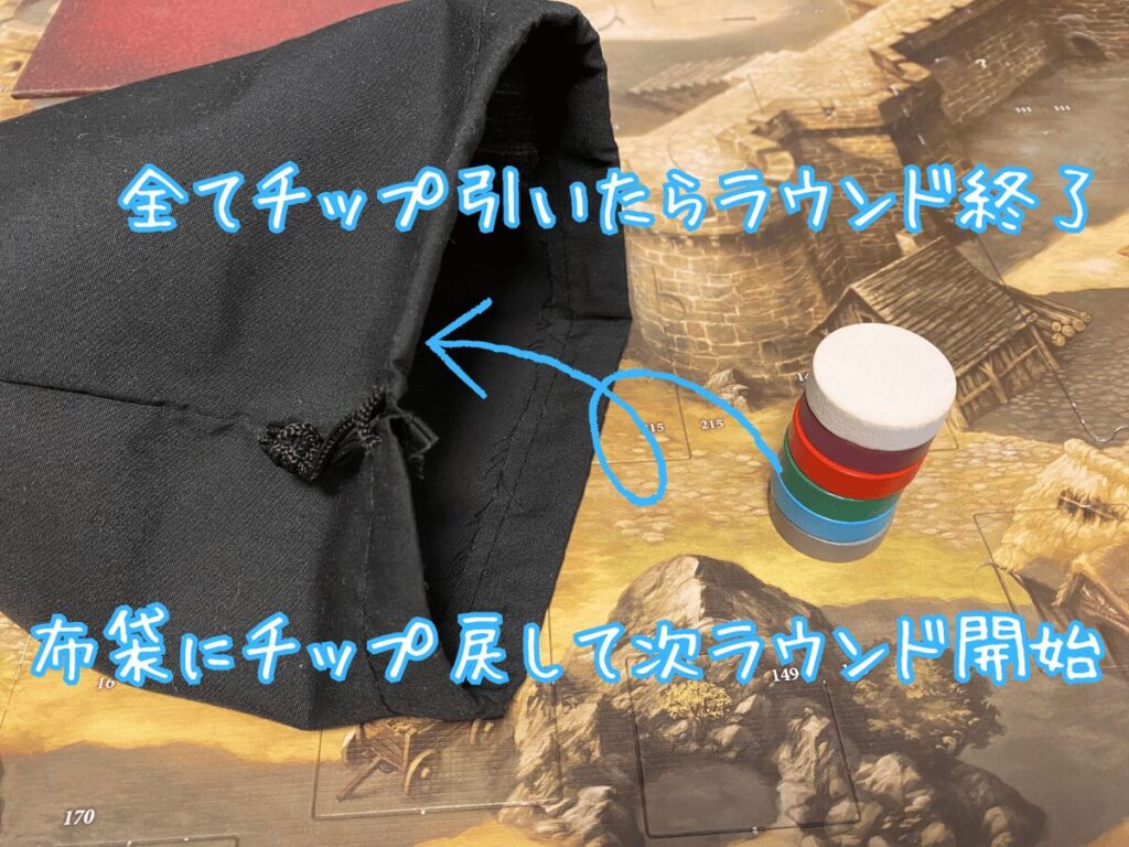 ラウンドが終了すれば、引き終わったチップを全て布袋に戻し、次のラウンドを開始します。