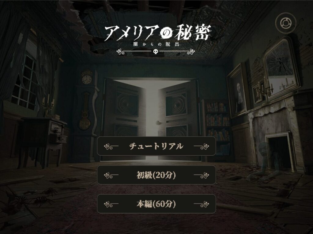 アプリを起動すると同時に、怪しげな音楽が流れ始めます。ボードゲーム版「アメリアの秘密」のトップビジュアルからしてかなり不気味な雰囲気ですが、アプリ側も負けず劣らずホラー感たっぷり。これから何が始まるんだろう、VRってどんな感じなのかな、と自然とワクワクしてきます。