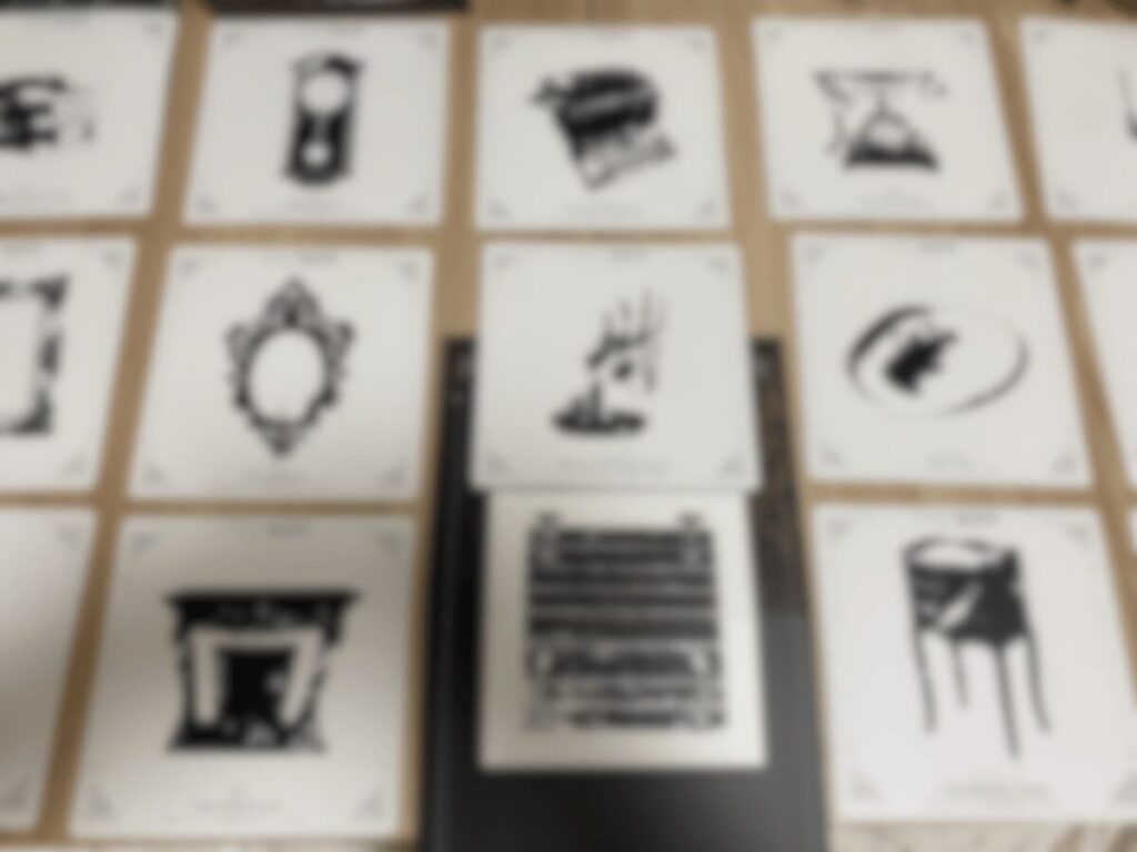 自宅の部屋に“呪われた館”を召喚するための準備を開始します。同梱されているカードシートを設置する作業をここでします。なお、シート自体は謎解きの解答に直接関わるものではないため、内容が見えてもネタバレにはなりませんが、念のため沢山載せてる方はモザイクかけておきます。