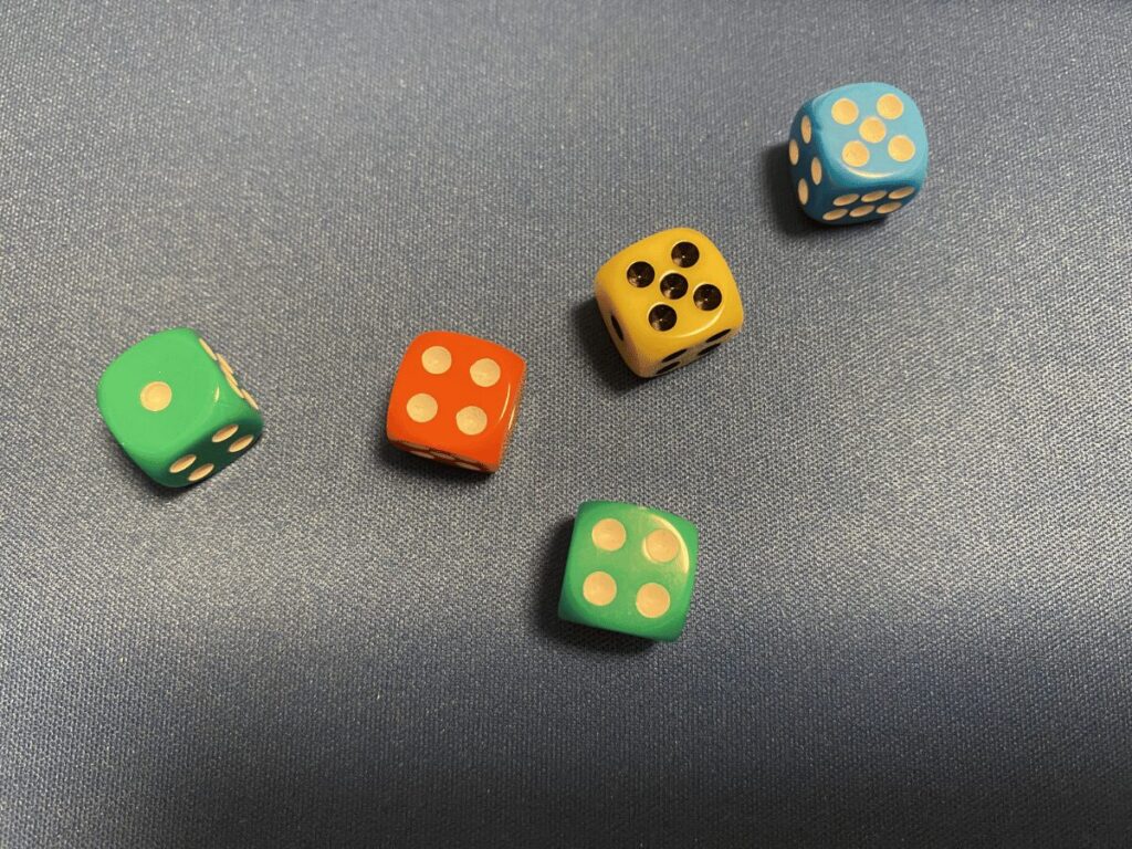 一方で紫ダイスの出目変更能力は、一見すると便利そうに見えるものの「出目が1のときにしか使用できない」という条件があるため、実際のプレイでは意外と使用機会が限られる能力でした。状況が合えば有効ですが、狙って使うのは少し難しい印象です。