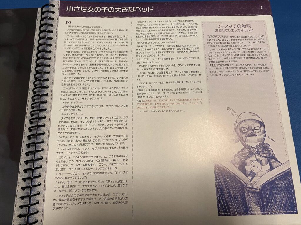 「ヌイグルミ騎士団」はストーリーブックを活用したボードゲームであり、各シナリオの背景からプレイ中の各アクションに至るまで物語が綴られており、少女とぬいぐるみ達が織りなす冒険譚を楽しみながらプレイするゲームです。そのため、ゲーム要素だけでなく物語にも重きが置かれており、物語好きが集えば盛り上がれる作品でしたね。
