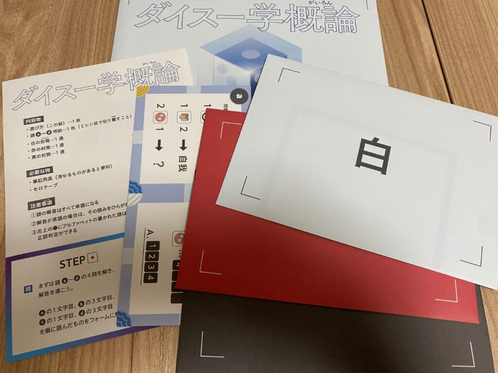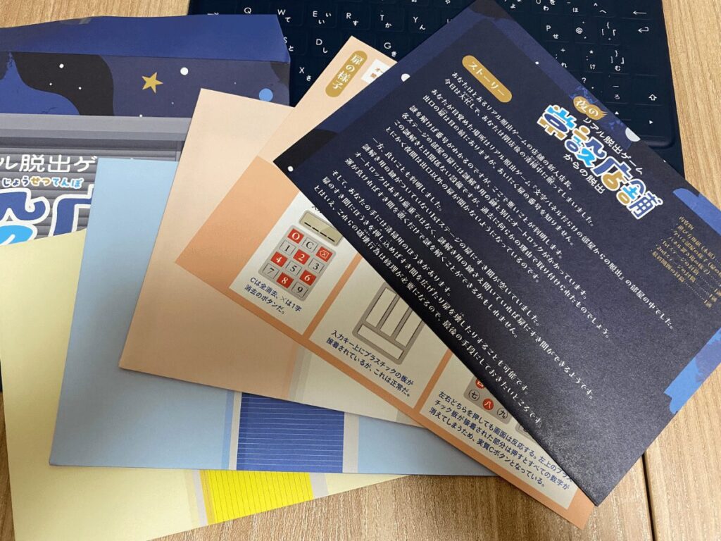 プレイスタイルとしては、手元のキットをじっくり眺めて解くというよりも、ウェブ上の専用システムを中心に進行する形式となっており、その点でも独自性の高い作品でした。簡易的ながらストーリー要素も用意されているため、単なるタイムアタックに終始せず、ゲーム感覚で楽しく遊べる謎解き作品に仕上がっていました。