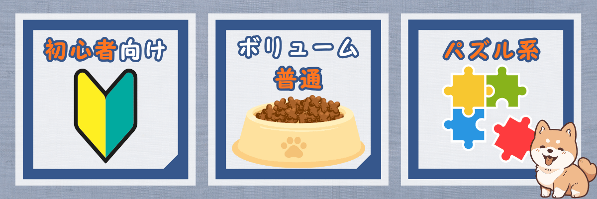 本作品の面白さは終盤のパズル大謎にあり、初心者は間違いなくギミックに感動できるかなと思いますね!