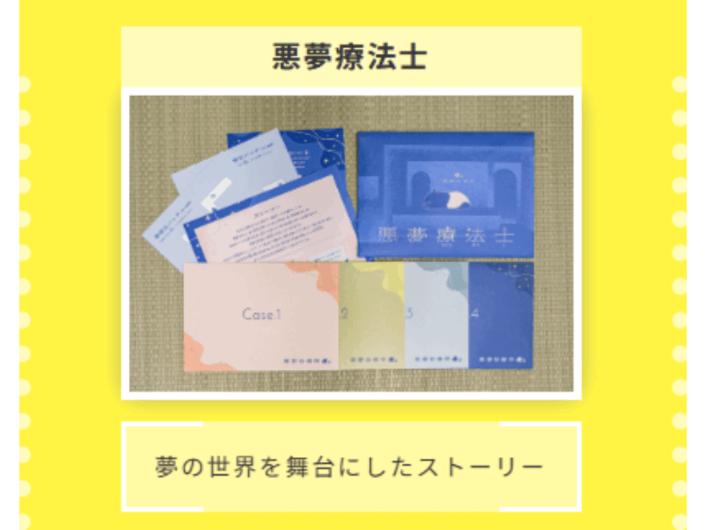 今回のMystery for you作品である“メモリーオブサイコ”もそうですが、本作の“悪夢療法士”もコンセプトがユニークで面白いですね。こういった現実では無い設定には話の展開からしてワクワクし、興味が惹かれますよね。