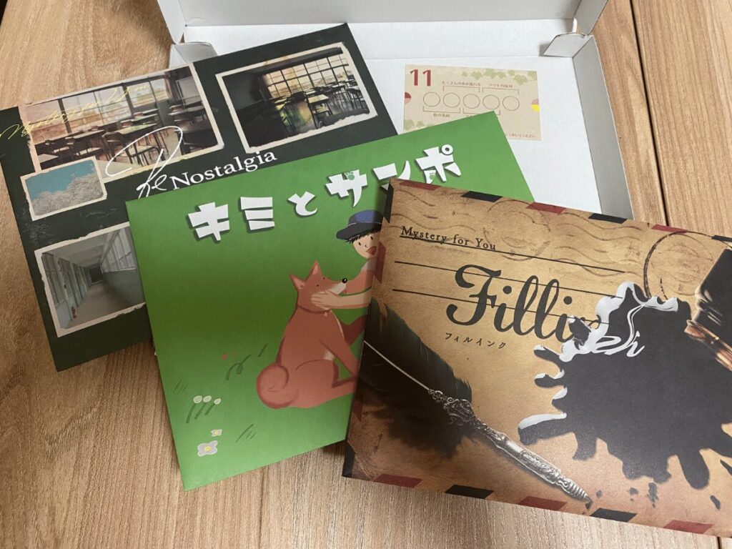 Mystery for youの「欲張りセット」も、気付けば継続7か月目に突入しました。そろそろ、箱内に同梱されている“謎の紙”がどのように使われるのかが気になり始める頃合いですね。12か月目に向けた長期的な仕掛けなのでは、と想像しながら先の展開を楽しみにしています。現在は1月ですが、ようやく11月号を完了。Mystery for youは同梱作品に季節感を取り入れてくる点も魅力のひとつなので、なるべく間を空けず、早めに最新号へ追いつきたいところです。