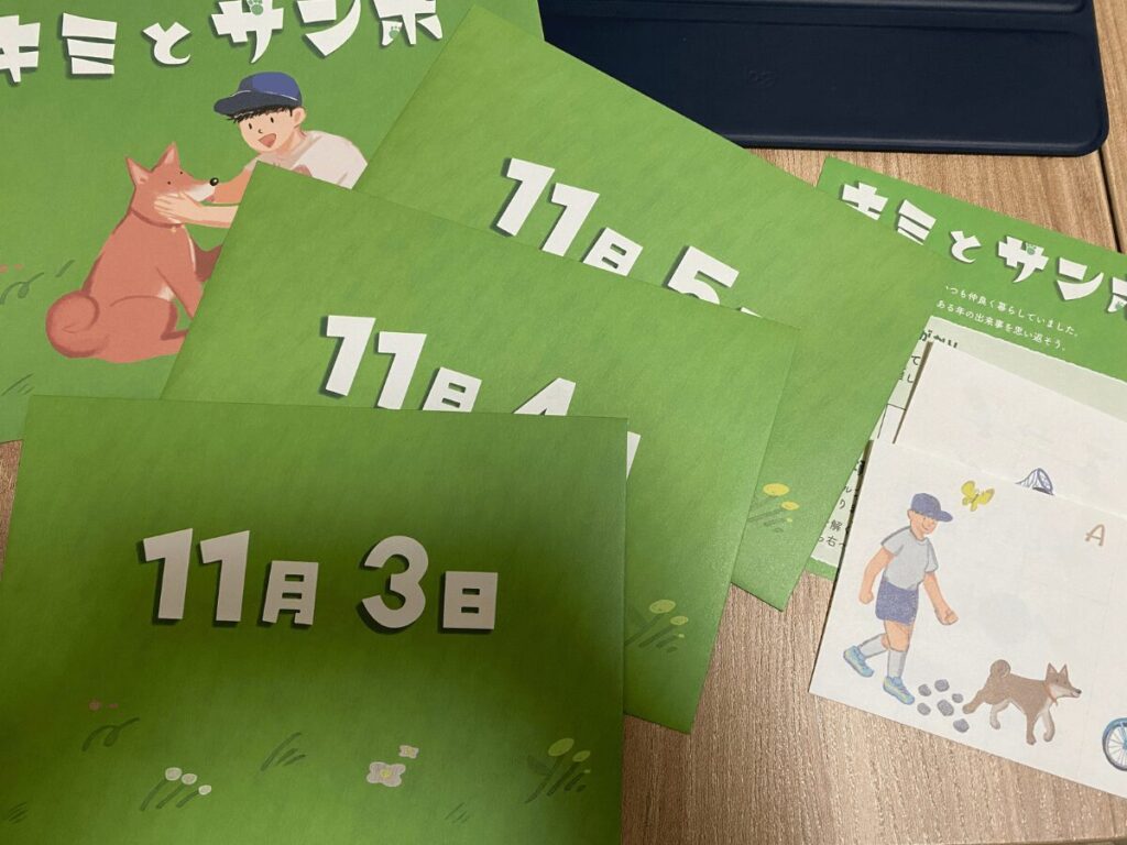 外観には少年と柴犬のイラストが描かれており、非常に可愛らしい印象を受けますね。内容も、主人公とワンちゃんが散歩をしながら体験するさまざまな出来事が描かれており、ほっこりとした雰囲気の中で謎解きを楽しめる構成になっていました。