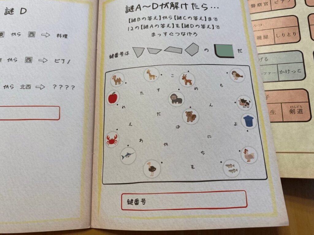 すべて父と母のやり取りの中に存在する情報を活用して解いていく構成で、基本的には物語を読み解き、指示通りに当てはめていくだけ。流れも素直なので、特に詰まることなく解けました。