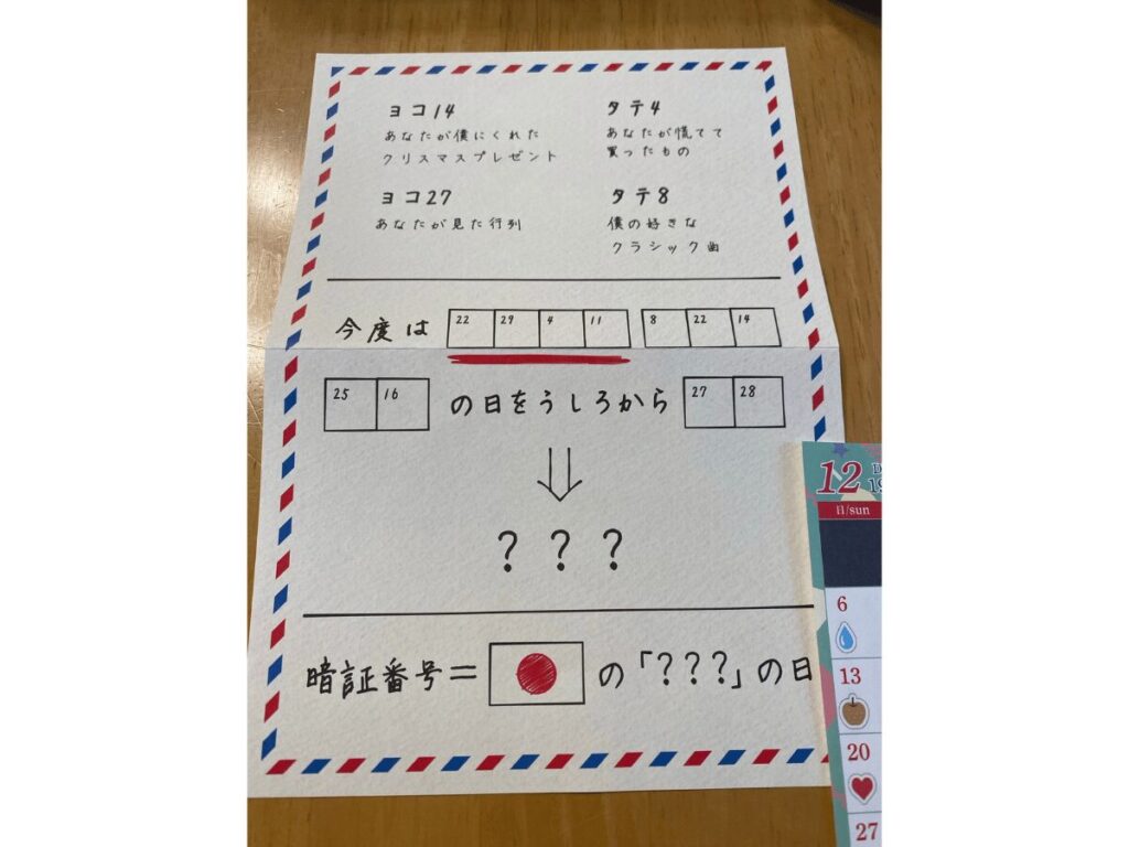暗号としては一部が史実的な要素を問う謎解きがありました。当然、調べないと分からないので、ウェブ検索を活用して解く謎になります。調べれば簡単ではありますが、リアルな事実と絡めてくるのは案外珍しいパターンで新鮮でした。