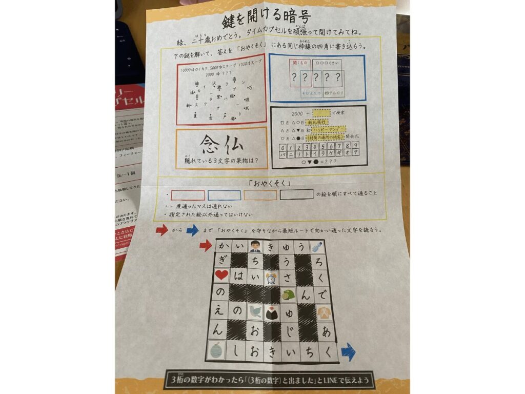 リアル脱出ゲームを全国に展開するSCRAPの謎解きキット『ミステリータイムカプセル』のプレイが終了しました!