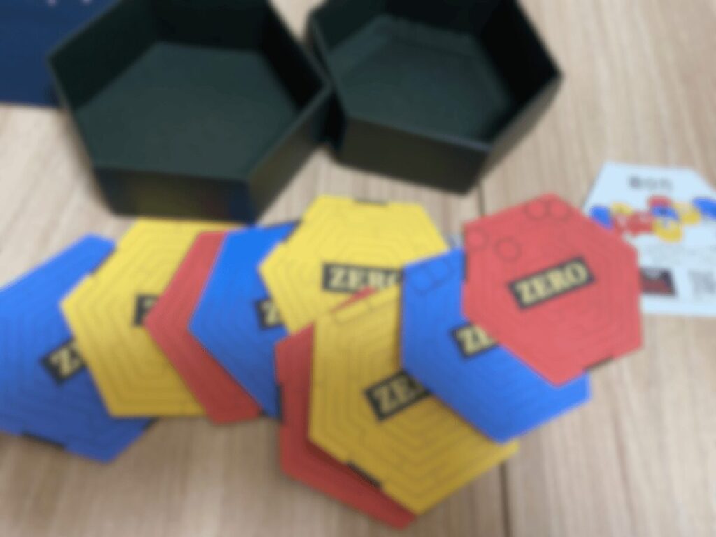 上述したように9roomsの世界観が現れているので、9種の謎解き部屋を模した六角形のカードに小謎が記載されている形。カードには意味ありげな裏面と謎部分の表面がありましたね。プレイ前からどう使うんだろう…とワクワクが止まりませんでしたね。