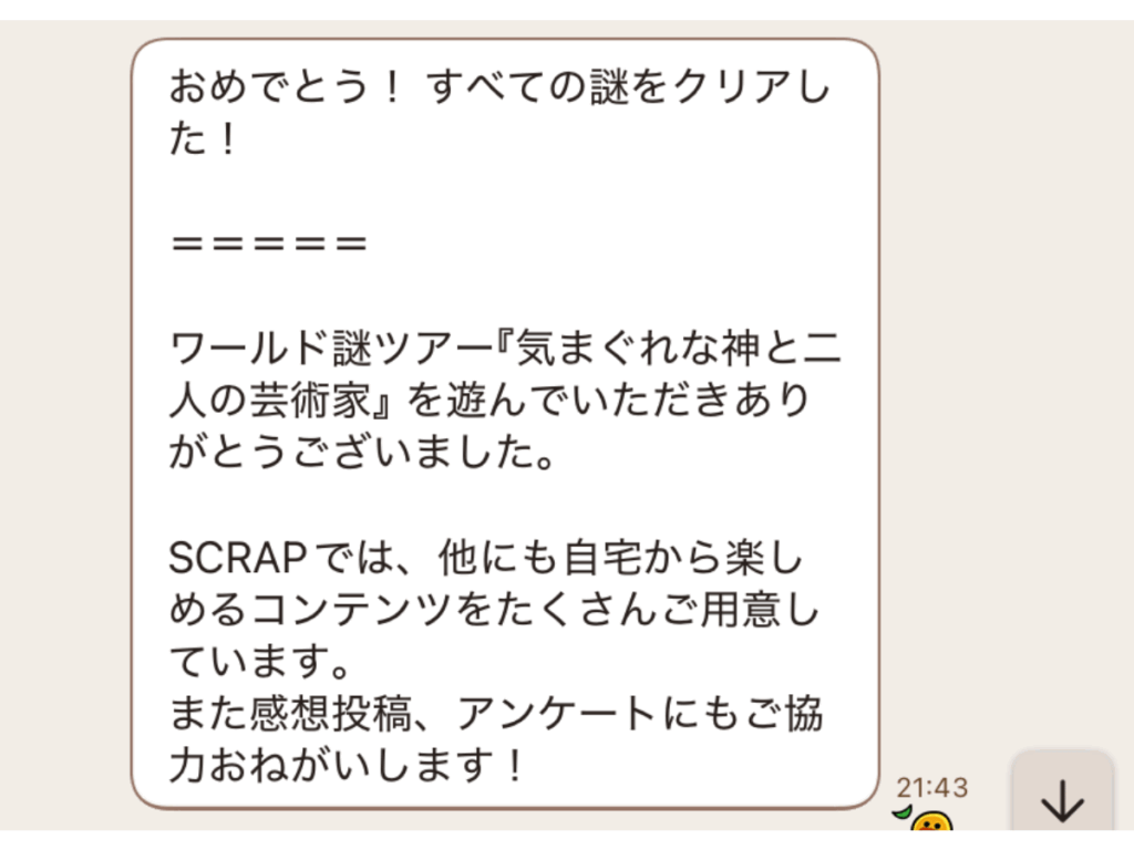 リアル脱出ゲームを全国に展開するSCRAPの謎解きキット『ワールド謎ツアー:気まぐれな神と二人の芸術家』のプレイが終了しました!