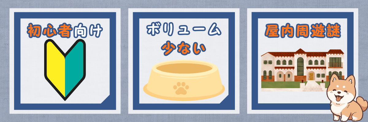 所要時間の目安は約60分ですが、周遊を含めてサクサク進めば30~40分程度でクリアできるでしょう。ちょっとした余暇時間の活用にぴったりですね。